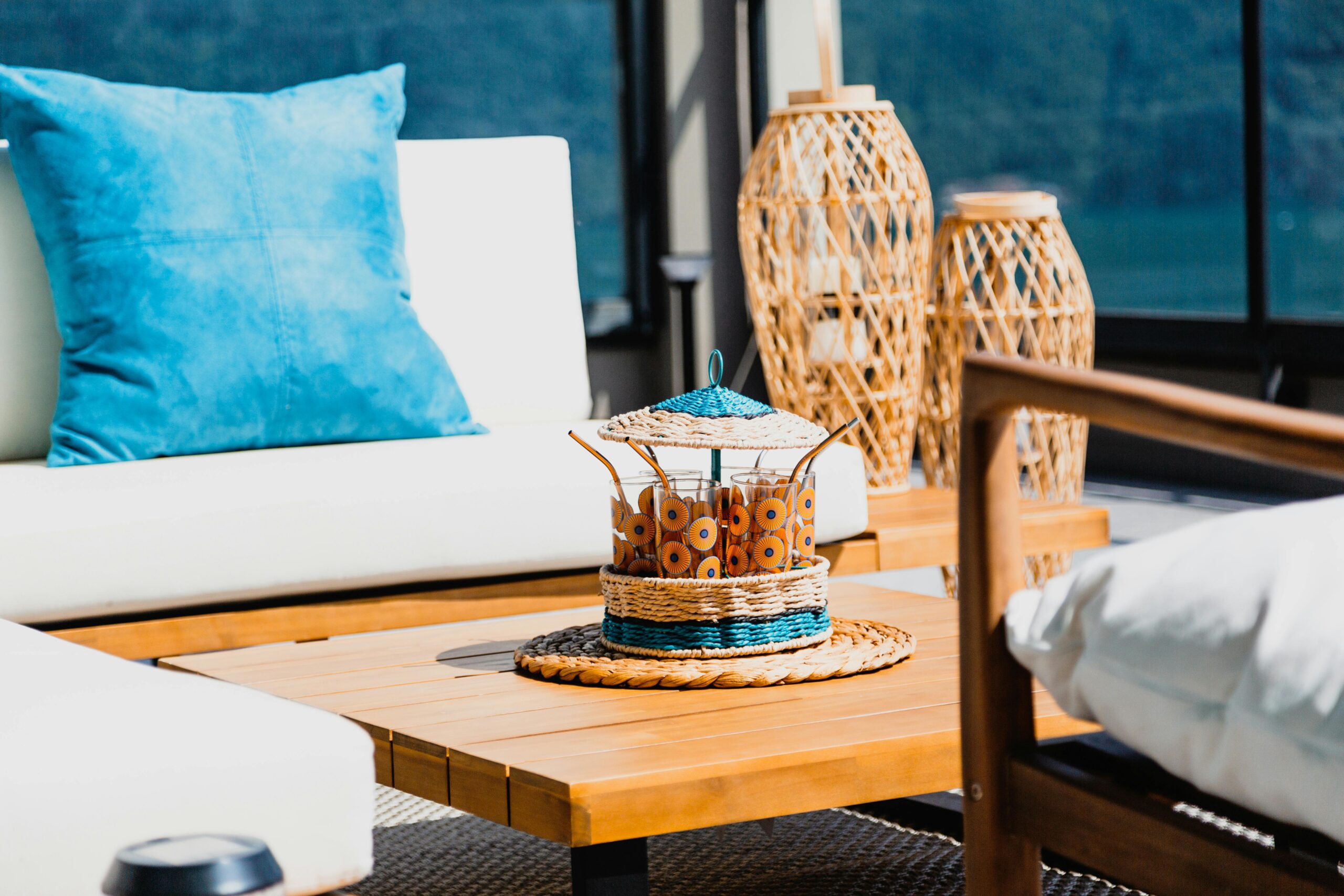 - A tray by the patio door for sunscreen and bug spray